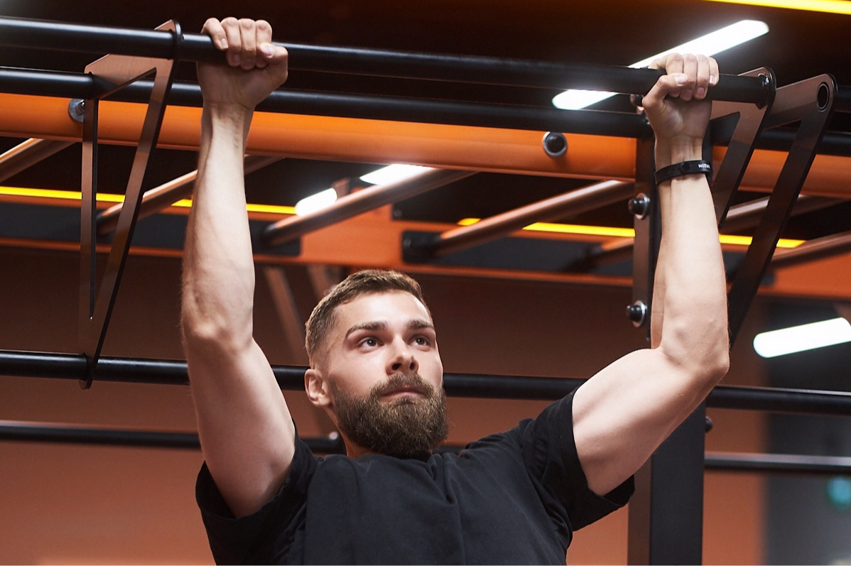 Упражнение выполняется так: хват чуть шире плеч, опускаем плечи, приводим лопатки к позвоночнику, доводим плечевые мышцы до боковой стороны спины. Представьте, что лопатки — это крылья, которые складываются, а потом снова раскрываются.